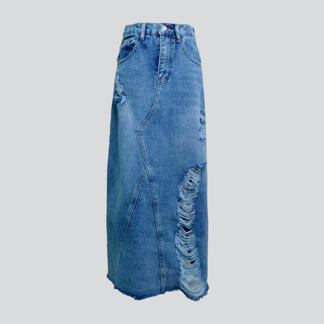 ¡Consigue ahora tu propia falda vaquera larga con abertura desgastada y sé el dueño de tu estilo!