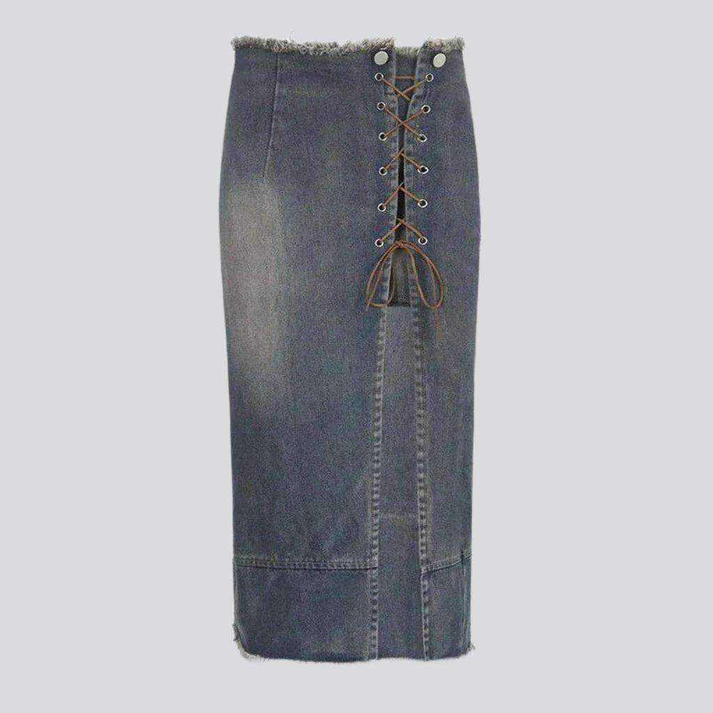 Presentamos la falda vaquera vintage con abertura y cordón de la colección Primavera-Verano 2023: ¡la combinación perfecta de estilo vintage y modernidad! Esta falda vaquera de cintura alta, inspirada en el Y2K, está diseñada para destacar con sus detalles únicos y su encanto atemporal.