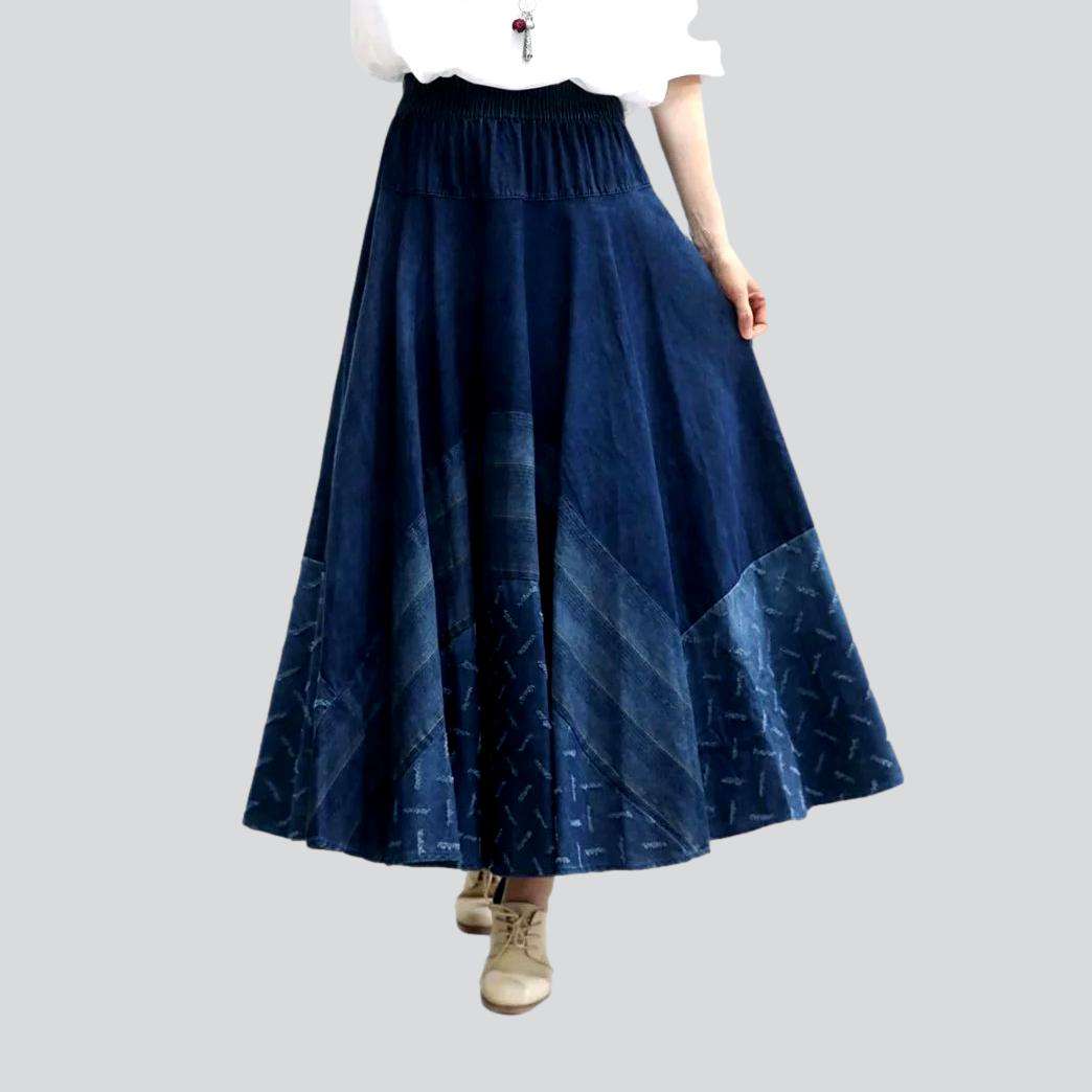 Añade un poco de estilo a tu guardarropa con esta exclusiva falda vaquera acampanada bordada. ¡Consigue la tuya hoy!