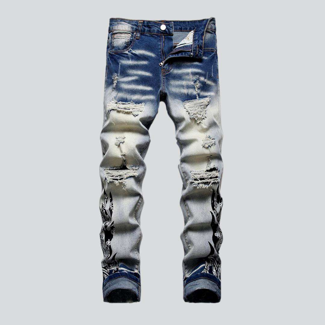 ¡Déjate llevar por el renacimiento de las tendencias con nuestra colección Primavera-Verano 2023 de jeans desgastados con estampado de llamas para hombre! Con un diseño icónico del sonido de Seattle, estos jeans ajustados de cintura media combinan la moda contemporánea con las tendencias nostálgicas. Con su estampado urbano desgastado, cierre de cremallera y botón, y tejido elástico, prometen durabilidad y comodidad con estilo.