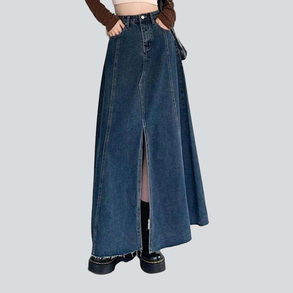 ¡Descubre el estilo Y2K de nuestra colección de otoño de 2023 con la falda larga de mezclilla con abertura que está lista para dejar su huella!