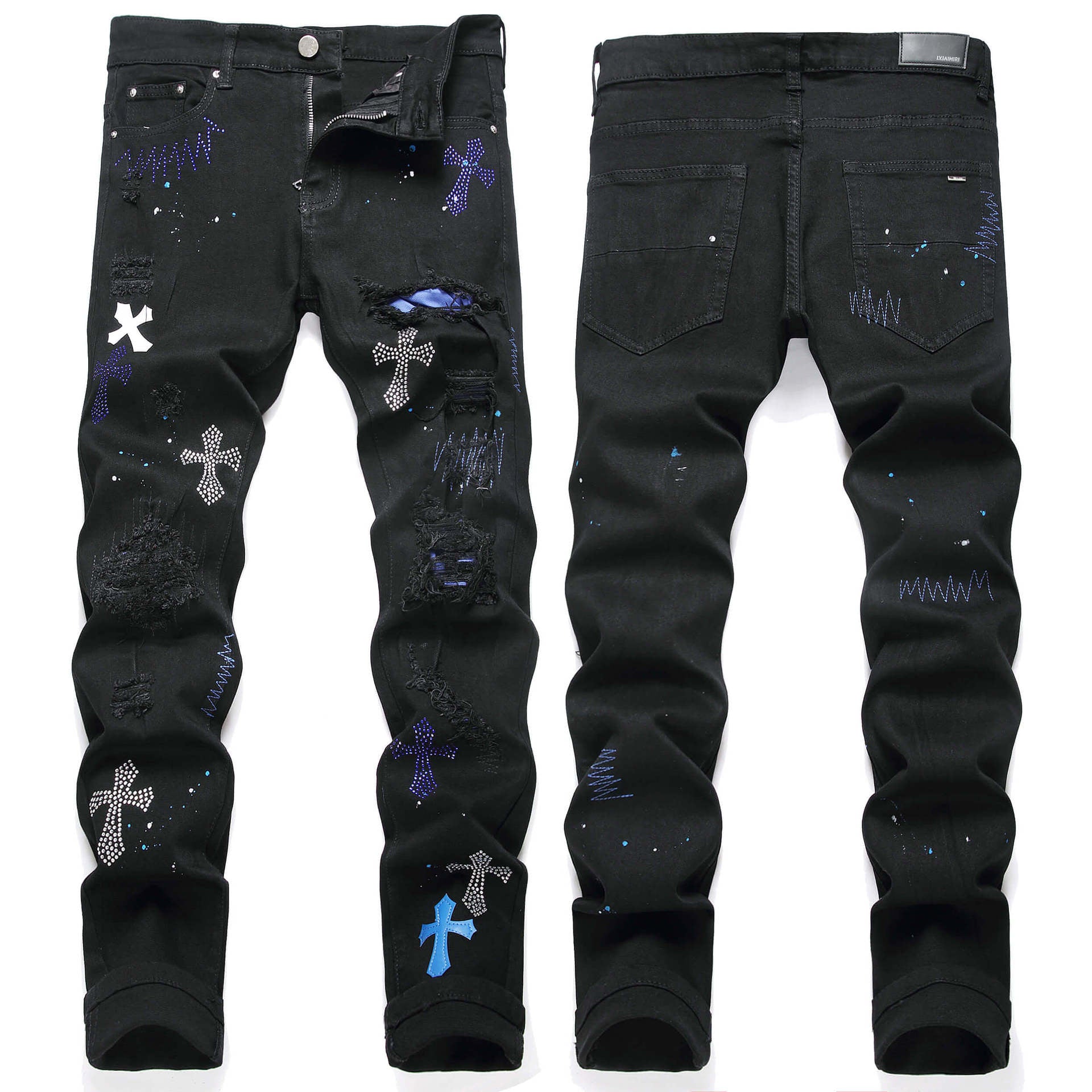 Presentamos nuestros jeans para hombre adornados con cristales dorados de la colección de otoño de 2023: ¡un artículo básico de guardarropa icónico y con un estilo atemporal!