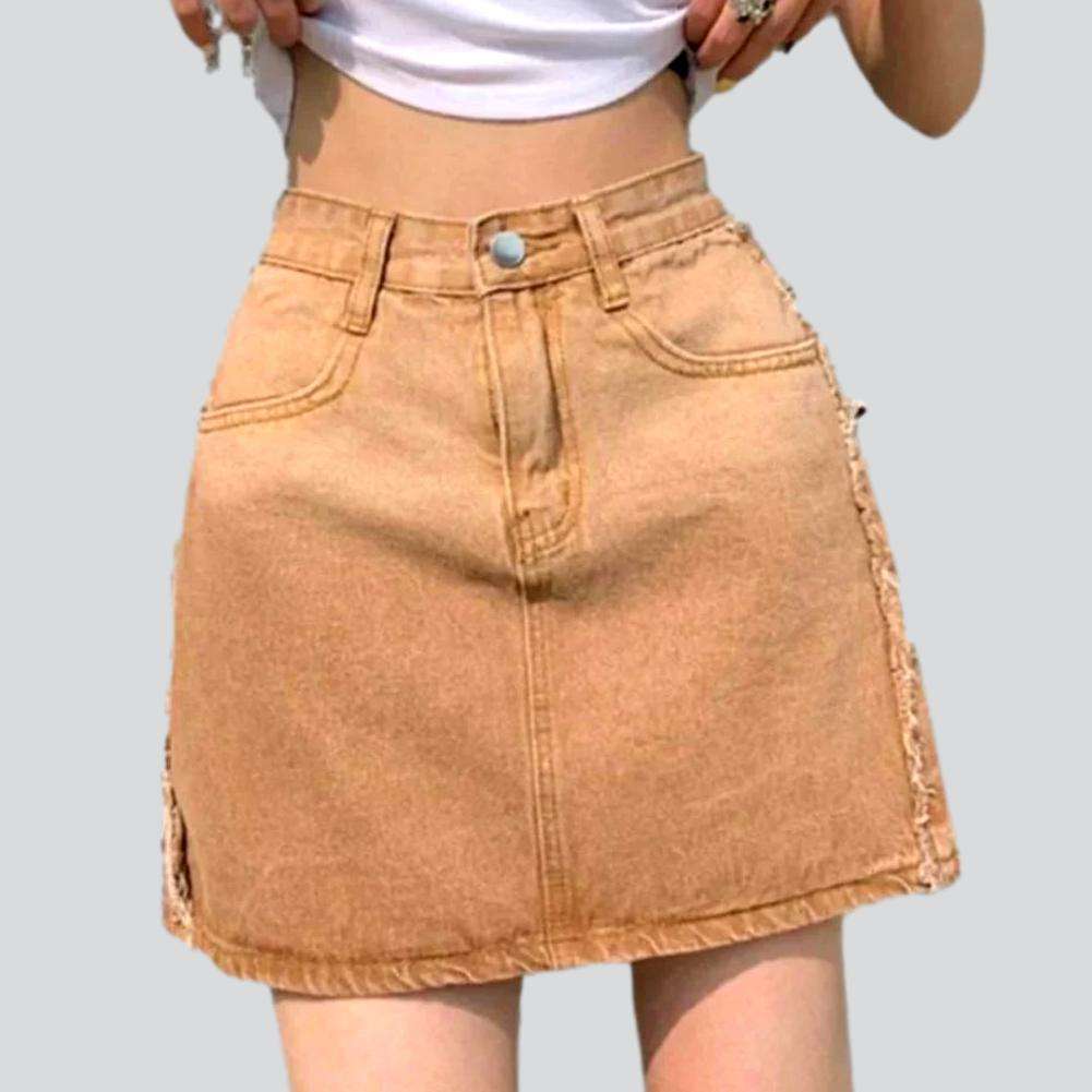 Presentamos la Colección de Verano 2023: una minifalda vaquera de cintura media, teñida con efecto dip, con cierre de cremallera y botón. Esta pieza única ofrece una versión moderna de la icónica moda Y2K, combinando un toque juvenil y sofisticado.