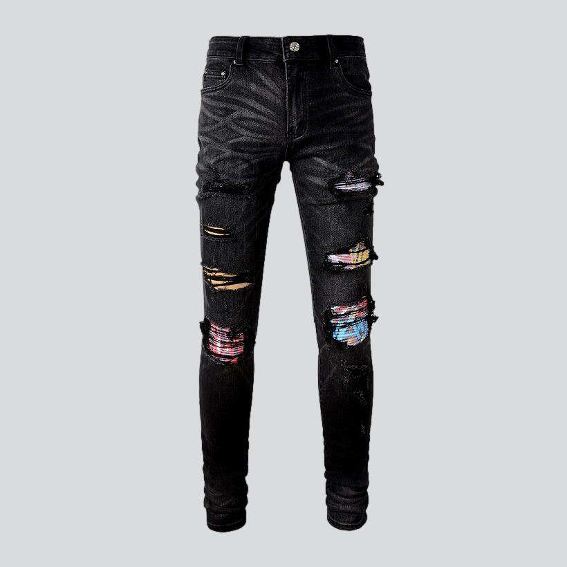 Luce tu estilo atrevido con estos jeans biker patchwork con estampado de grafiti. Una atrevida combinación de estilo biker clásico y modernidad. Perfectos para reuniones en azoteas, picnics soleados o esa salida nocturna especial: ¡estos jeans prometen que todas las miradas se voltearán al entrar!