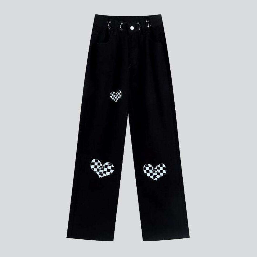 Dale la bienvenida a la nueva temporada con nuestros jeans holgados negros con estampado de corazones. ¡Estilo Y2K de la colección Otoño 2023! Inspirados en el espíritu del milenio y confeccionados para irradiar elegancia moderna, estos jeans prometen transformar tu look en una obra maestra atemporal.
