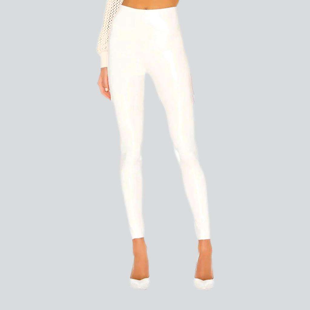 Estos pantalones son más que una simple declaración de moda: son un símbolo de sofisticación y elegancia atemporales. Su cintura alta está diseñada para favorecer a cualquier tipo de cuerpo, mientras que su brillo encerado añade una vibrante capa de textura que los hace destacar.