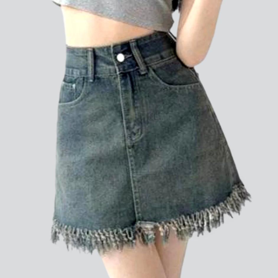 Esta minifalda vaquera promete darle un toque chic a tu armario. Su diseño único presenta un corte de tiro alto, cierre de cremallera y botón, y un dobladillo con flecos que te hará lucir con estilo. Ya sea para un día de compras o para bailar hasta el amanecer, esta prenda te brindará confianza y comodidad.