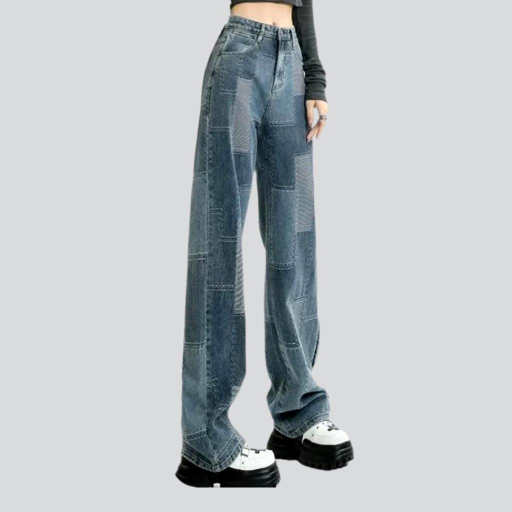 Luce tu estilo con la cintura alta, la silueta de pierna recta y el cierre de cremallera y botón, ¡sin mencionar el llamativo diseño de patchwork! Estos jeans son verdaderamente únicos y serán la envidia de tus amigas.