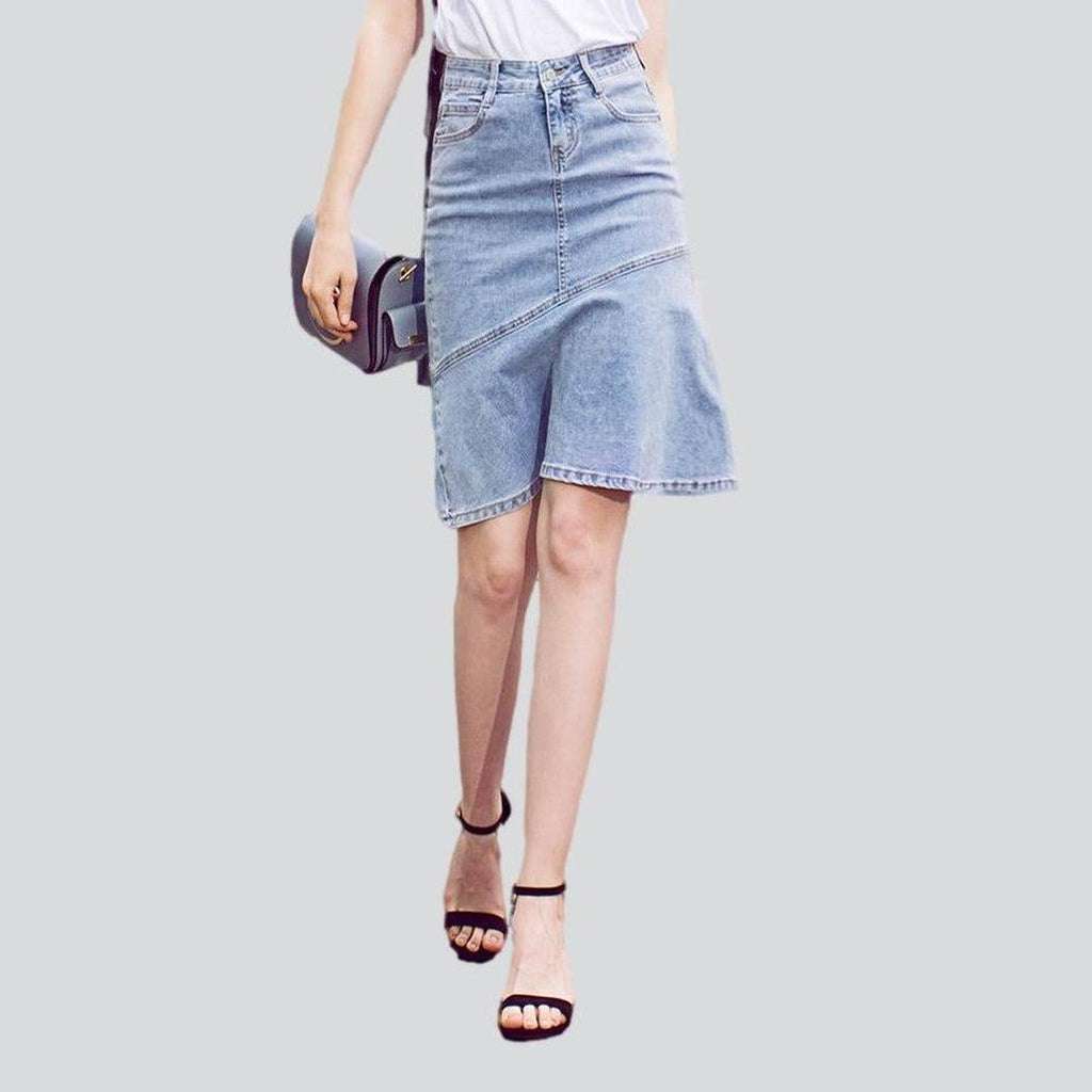 ¡Presentamos la pieza de moda imprescindible de la colección de verano 2023: la falda vaquera de sirena hasta la rodilla!