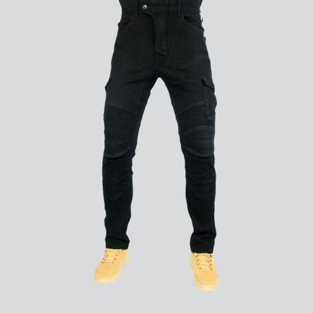 Sigue la tendencia con nuestros pantalones vaqueros con rodilleras para hombre de la colección Otoño 2023. ¡Estilo motero! Ofrecen protección de tiro medio con rodilleras. Estos pantalones están confeccionados con cierres de botón y cremallera, además de una capa de kevlar para mayor protección. Te verás y te sentirás mejor que nunca con estos elegantes pantalones de protección.