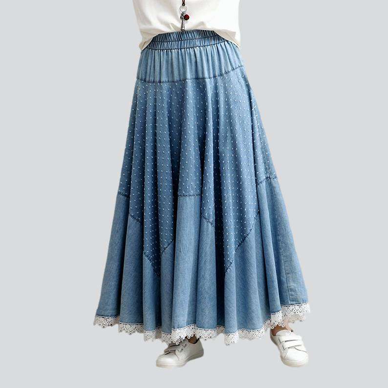 Presentamos la falda vaquera bordada con dobladillo de encaje de la colección Primavera-Verano 2023: ¡la encarnación perfecta del estilo urbano y la feminidad feroz!