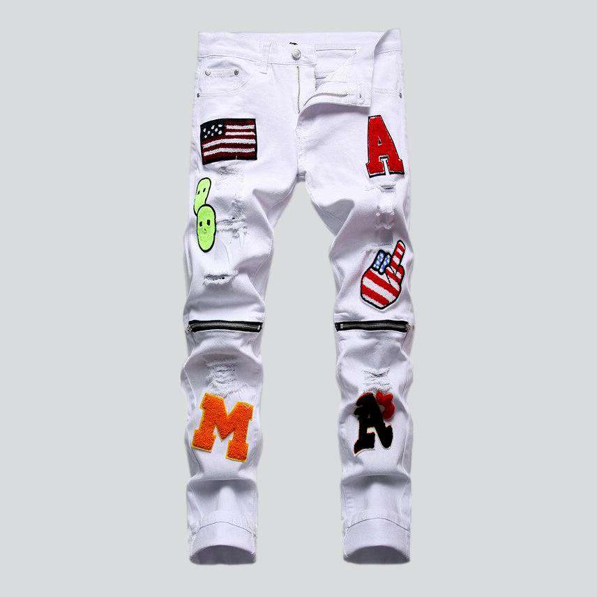 Para quienes marcan tendencia, estos jeans blancos con letras bordadas son la manera perfecta de destacar. Ya sea para una salida nocturna con amigos o para un evento formal, son el complemento perfecto para tu armario. Demuestra tu confianza y estilo con este clásico atemporal. ¡Consigue tu par ya!