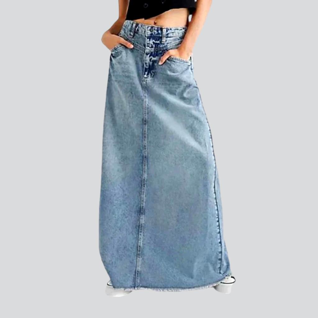 Esta falda está diseñada para destacar. Su mezclilla de lavado claro y su silueta retro se combinan para crear un conjunto atemporal y moderno a partes iguales. Con su diseño de cintura alta y largo, sin duda destacarás.