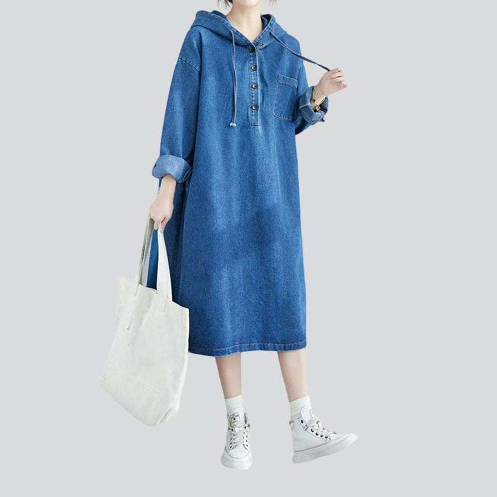 Este vestido vaquero de manga larga con capucha es la combinación perfecta de alta costura contemporánea y grunge nostálgico. Ideal para festivales de música o para quedar en casa, este vestido será la joya de la corona de tu look. Entra en la temporada Primavera-Verano 2023 con un estilo audaz y tradicional. ¡Consíguelo ya!