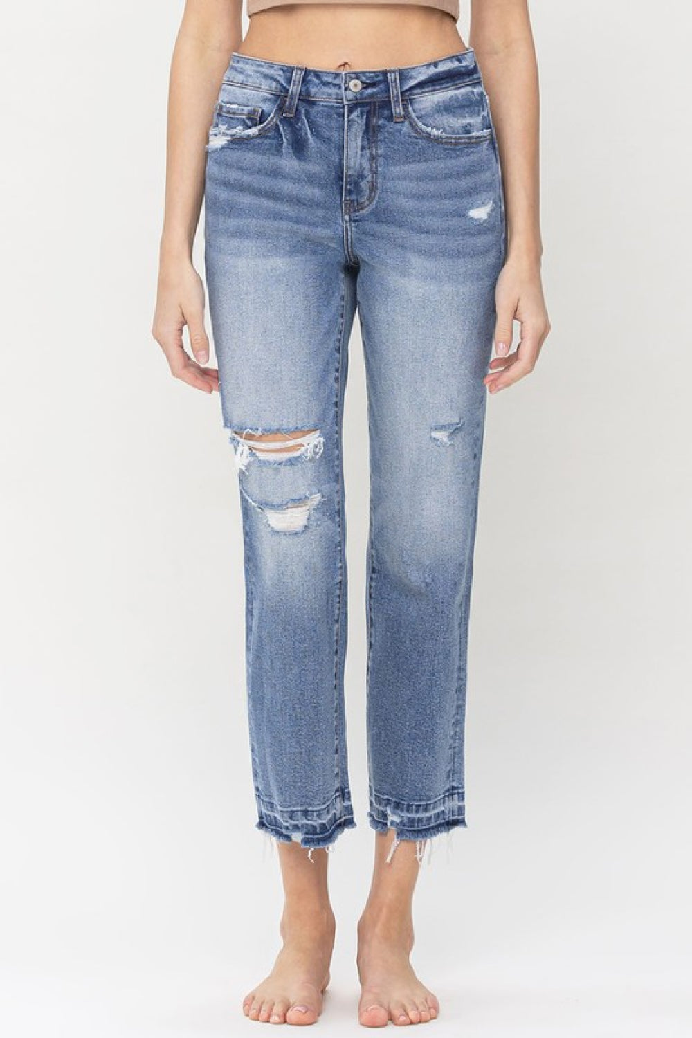 ¡Llega la primavera y estos jeans cropped completarán tu armario de verano! Con un tiro alto que favorece y se ajusta cómodamente a la cintura, son fáciles de combinar con una camiseta, un bralette o un body. El ligero efecto desgastado les da un toque muy especial, haciéndolos aún más populares.