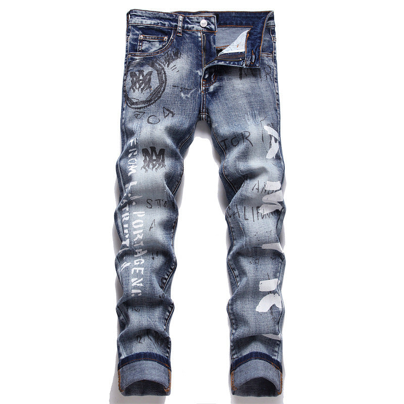 Presentamos nuestra colección Primavera-Verano 2023 de jeans para hombre pintados con lavado medio estilo Y2K: ¡un estilo tradicional por excelencia con un toque moderno!