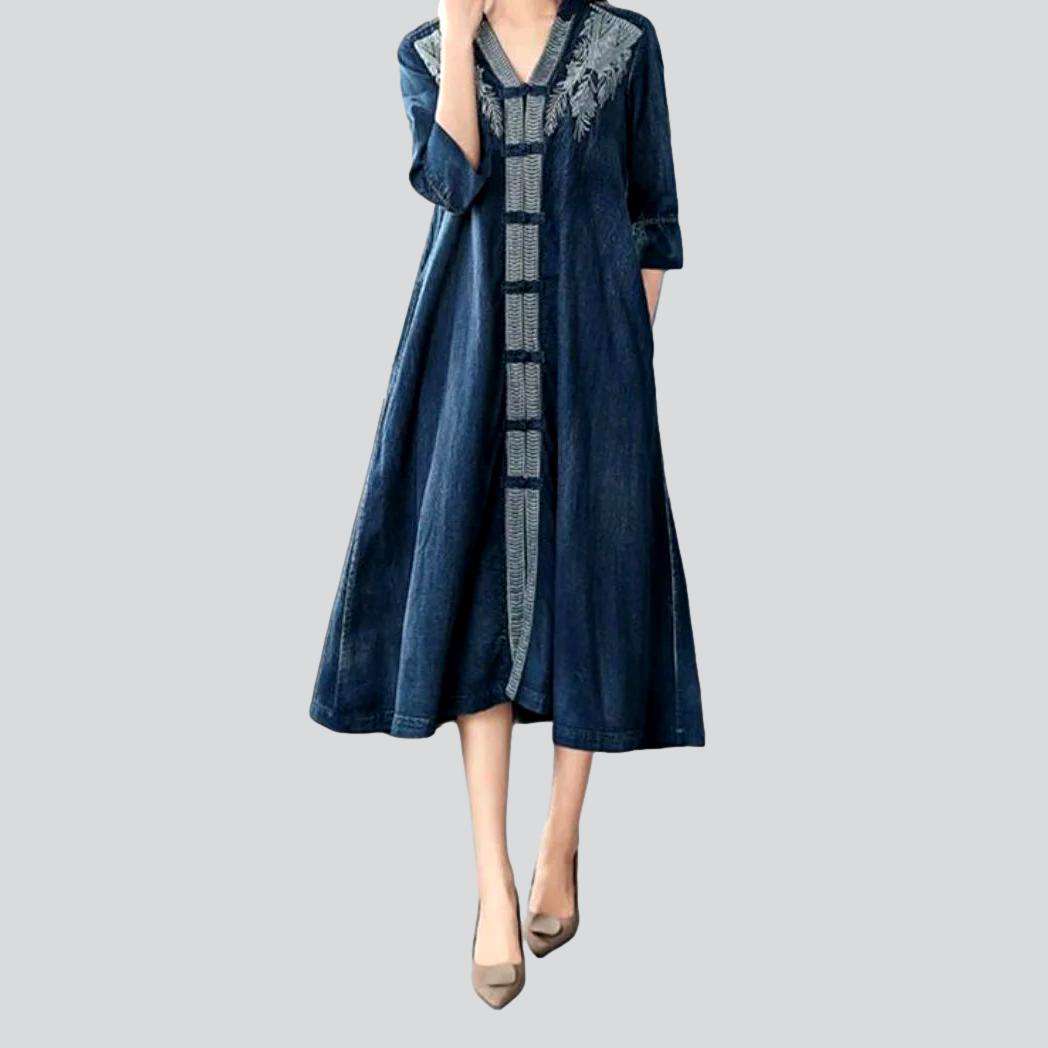 Presentamos el vestido de mezclilla con bordado chino hasta media pantorrilla de la colección primavera-verano 2023: ¡una pieza nostálgica que te transportará directamente a la era Y2K!