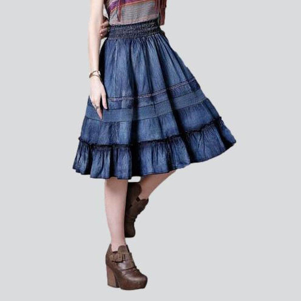 Manténgase elegante esta temporada con esta falda vaquera con volantes de media longitud para mujer. ¡Consiga la suya ahora!