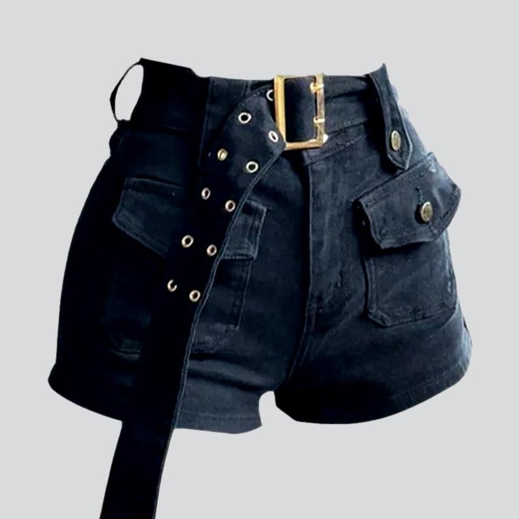 Recibe el verano con estilo y gracia con estos shorts vaqueros azul marino con cinturón de nuestra Colección de Verano 2023. Con un look monocromático informal, estos shorts ajustados de cintura alta cuentan con cierre de cremallera y botón, lo que los convierte en la opción ideal para tus veladas de verano.