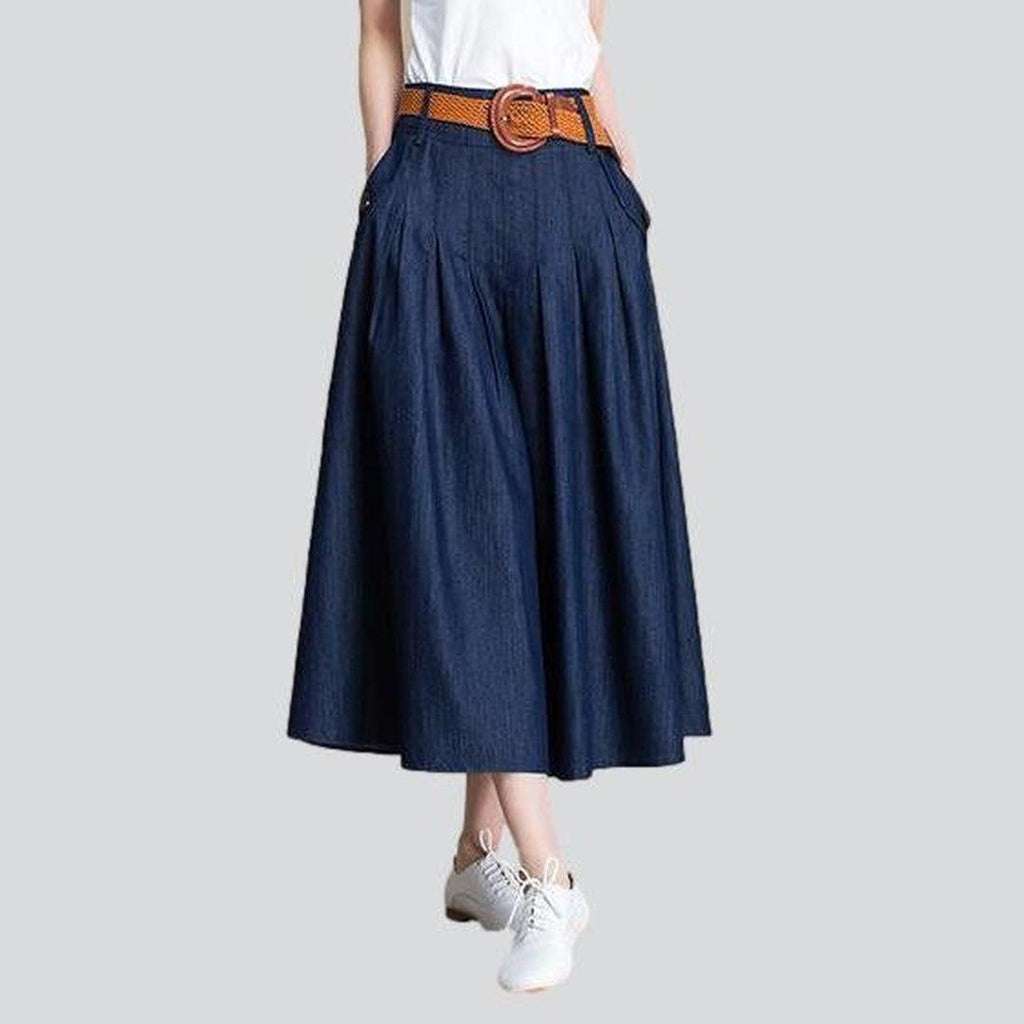 ¡Desata la diosa sub-pop que llevas dentro con nuestra falda vaquera larga acampanada azul marino de la colección primavera-verano 2023! Esta prenda básica de estilo urbano sin duda marcará la diferencia con un look moderno y vanguardista.