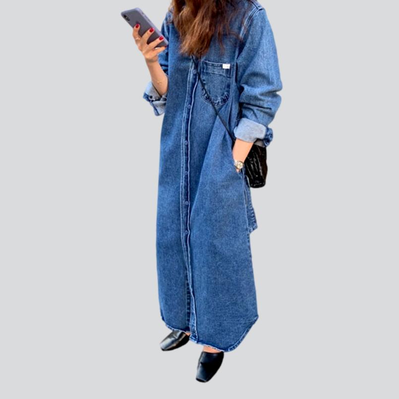 Presentamos con orgullo el vestido vaquero largo oversize de nuestra colección Primavera-Verano 2023. ¡La tendencia del siglo XX, la expresión perfecta de la moda y el grunge nostálgico!