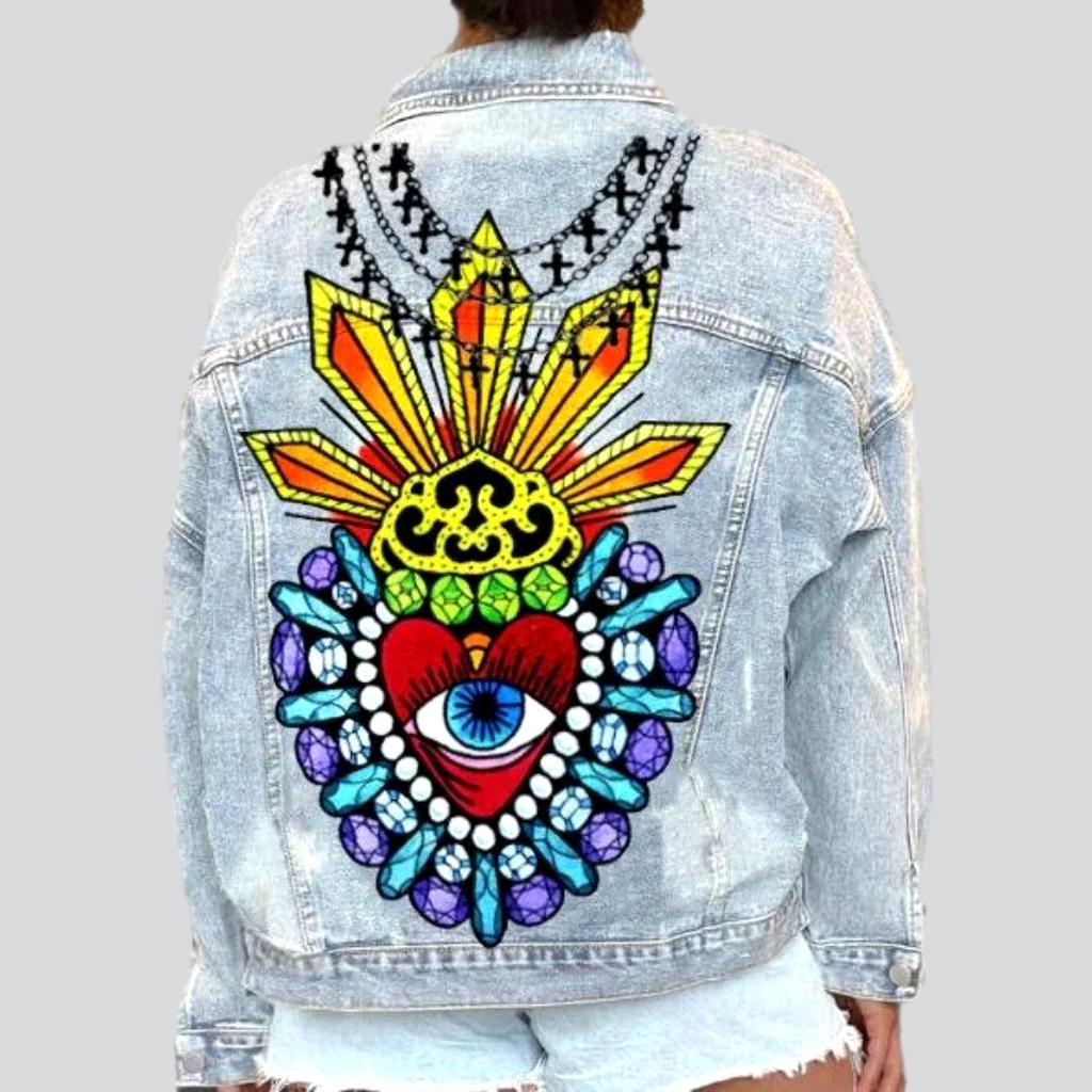 Marque una declaración esta temporada con nuestra chaqueta vaquera pintada para mujer de la colección Otoño-Invierno 2023: ¡una obra maestra de alta costura con aire urbano, confeccionada con un confort extragrande y un lavado claro, y adornada con un cautivador grafiti con estampado de corazones!