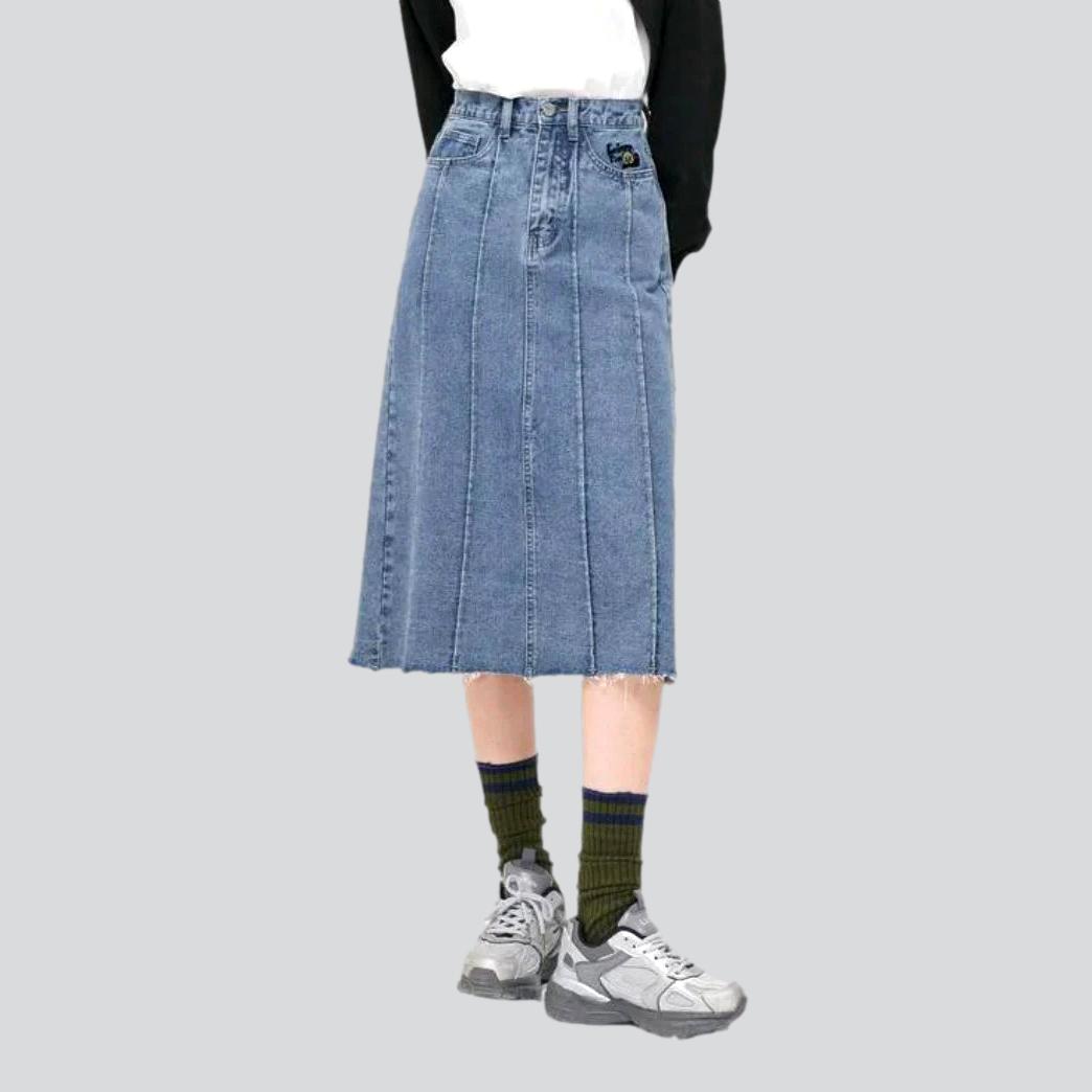 Viaja al pasado con nuestra falda vaquera midi con bordado de panda de la colección Primavera-Verano 2023, un vibrante homenaje a la era del efecto 2000. Esta falda de cintura media es imprescindible para las fashionistas modernas con un toque nostálgico.