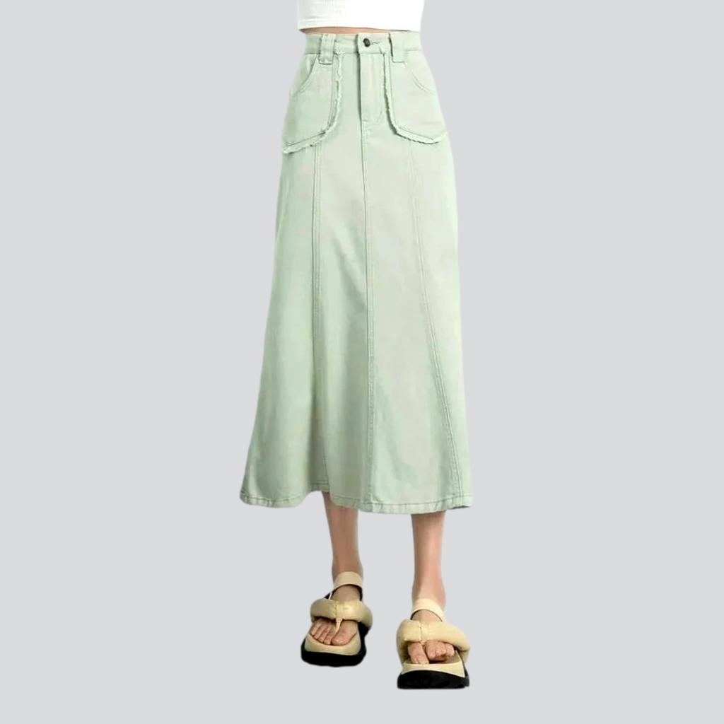 Presentamos la colección Primavera-Verano 2023 de faldas vaqueras largas con bolsillos de patchwork: una versión ultramoderna y urbana de un clásico básico. Nuestra falda de cintura alta y corte sirena está confeccionada con denim lavado a la piedra de primera calidad y cuenta con cierre de cremallera y botón para un ajuste perfecto y un estilo informal.