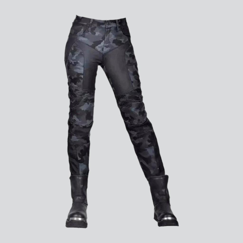 Presentamos nuestros elegantes jeans biker con parches para mujer de la colección Otoño 2023: ¡la combinación perfecta de estilo vanguardista y características protectoras!