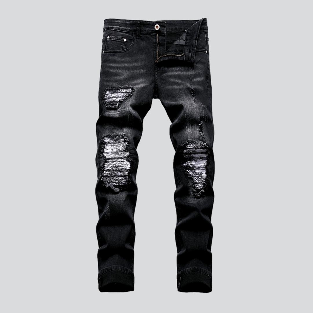 ¡Destaca con nuestros jeans moteros Patchwork Knees para hombre de la colección Otoño 2023! Con estilo motero, acabado desgastado, corte ajustado y diseño de cintura media, estos jeans sin duda llamarán la atención. Confeccionados con cierre de cremallera y botón, ofrecen la combinación perfecta de estilo, comodidad y fiabilidad.