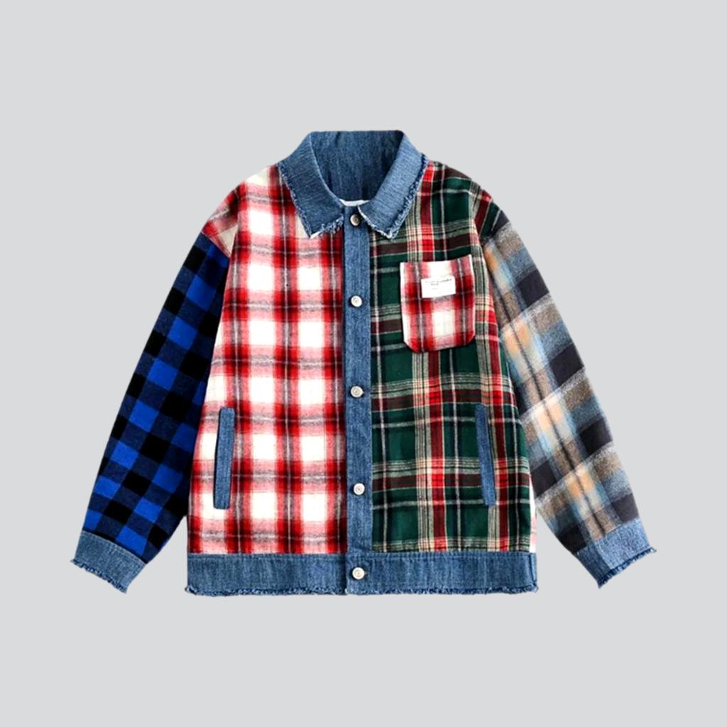 Dale un toque de dinamismo a tu armario con nuestrachaqueta vaquera patchwork para mujer de la colección otoño 2023. Luce un estilo vanguardista con esta prenda de tendencia. Con corte oversize, mezcla de tejidos y estampado de cuadros, y cierre abotonado.