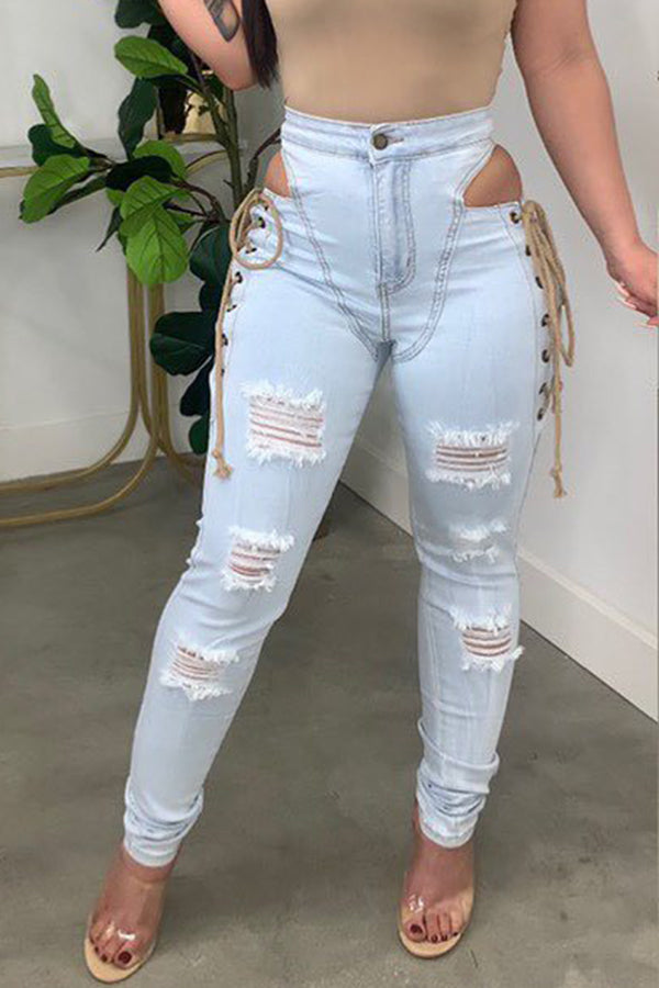 Si buscas unos jeans ajustados con cordones, ¡no busques más! Nuestros elegantes jeans le darán un toque de estilo instantáneo a tu armario.