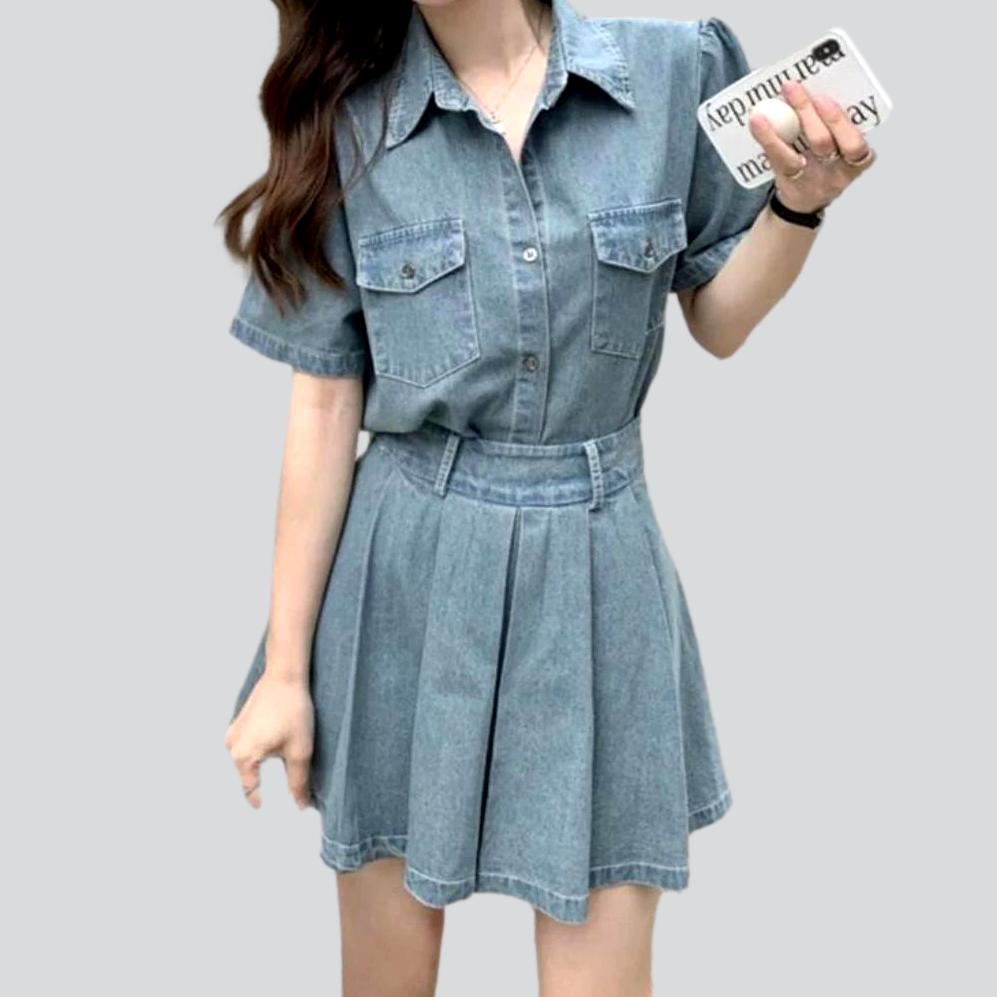 Presentamos nuestro minivestido de mezclilla plisado inspirado en el siglo XX de la colección de verano 2023: ¡un diseño atemporal que combina la moda convencional y el estilo contemporáneo!