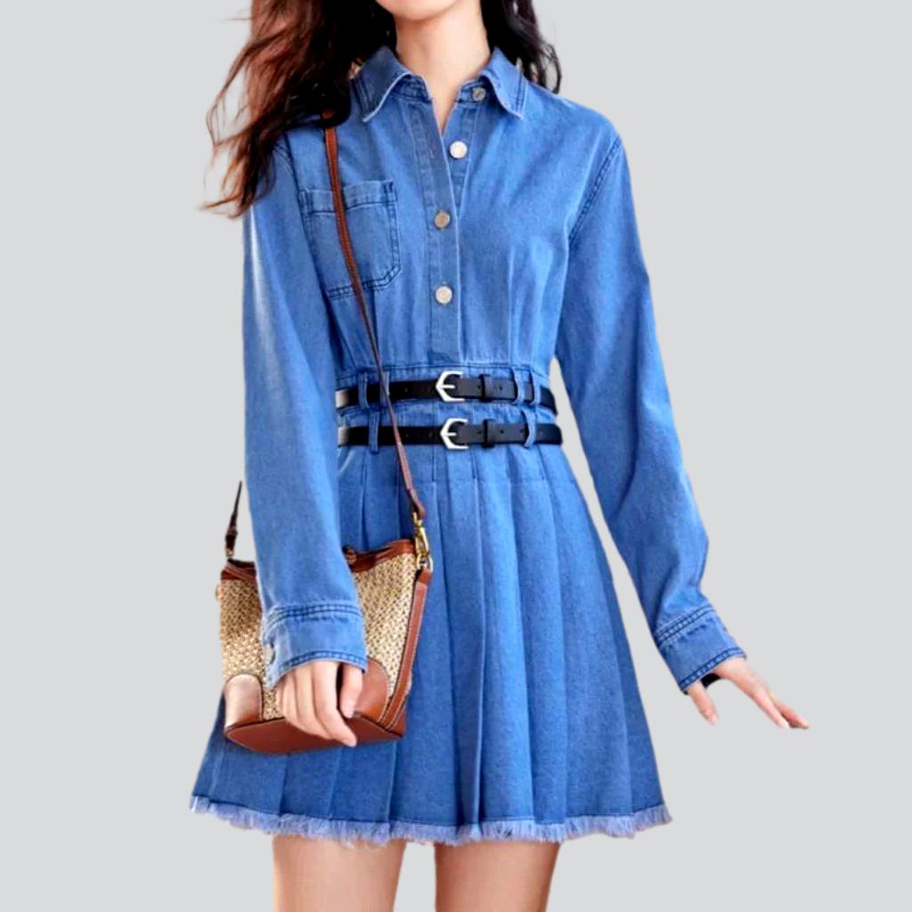 Presentamos el vestido de mezclilla plisado con dobladillo sin procesar de primavera-verano 2023. Estilo de los 90: ¡un diseño clásico que adopta la moda grunge del pasado con un toque moderno!