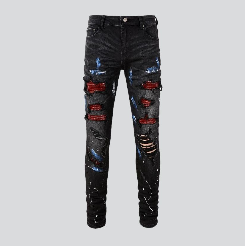 Presentamos nuestros jeans para hombre Red Crystal Stacked de la colección de otoño de 2023: ¡una mezcla de estilo Y2K y moda de moda!
