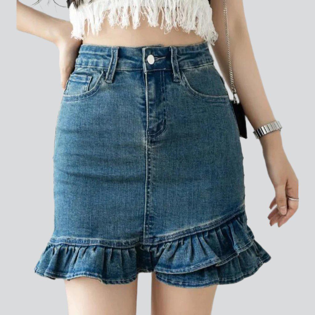Bienvenidos a la Colección de Verano 2023. ¡Donde la alta costura se fusiona con la nostalgia! Nuestra falda vaquera micro con volantes es la fusión perfecta de elegancia contemporánea y estilo vintage de los 90. Desde sus detalles desgastados hasta su corte a media cintura y su cierre de cremallera y botón, esta prenda sin duda se convertirá en tu prenda esencial del verano.