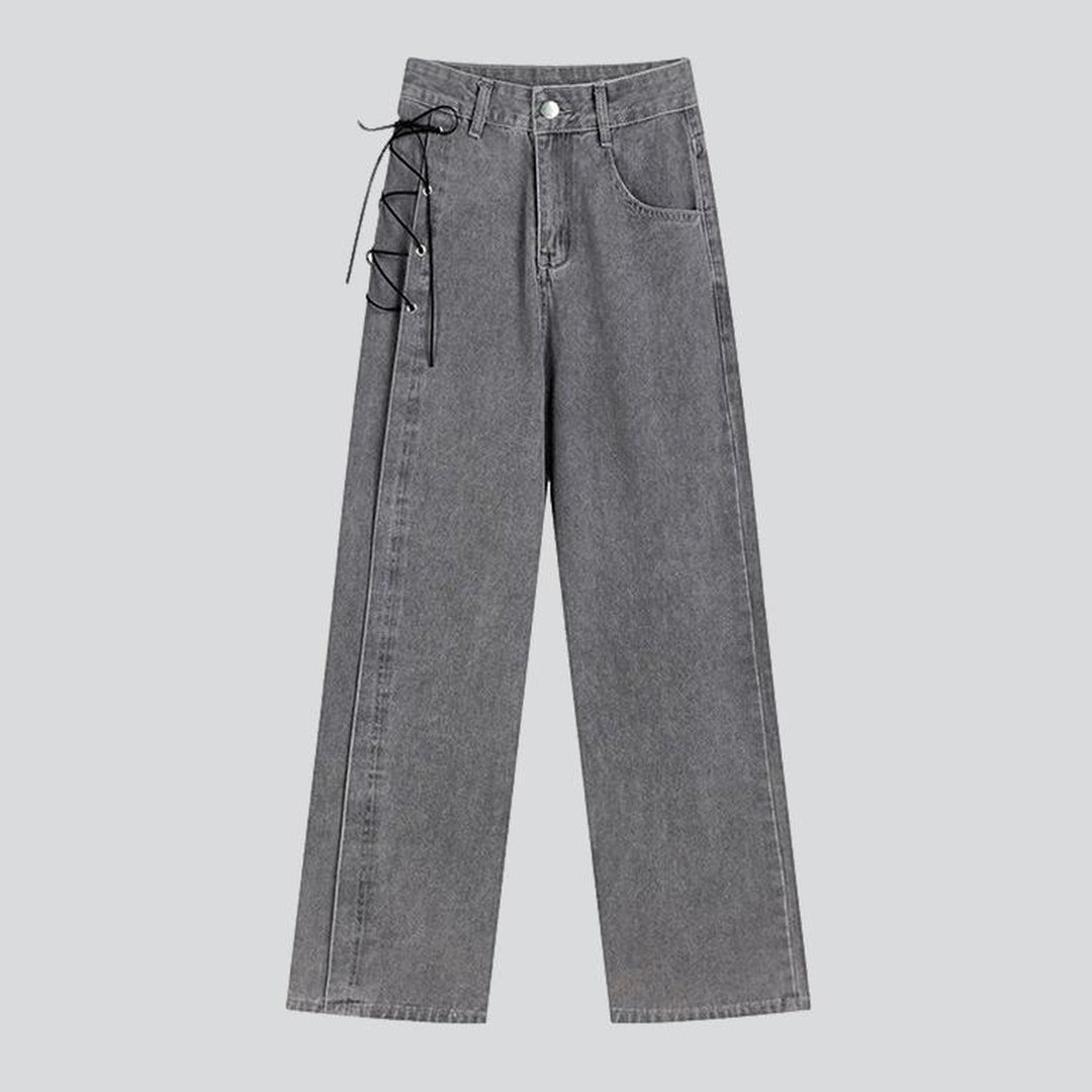 Presentamos la Colección Otoño 2023, ¡un imprescindible para la mujer que busca la alta costura! Disfruta de un viaje al pasado con nuestros vaqueros holgados de tiro alto con cordón lateral, inspirados en el siglo XX. Confeccionados con cierre de cremallera y botón, estos vaqueros lavados a la piedra prometen un look clásico, perfecto para cualquier ocasión.