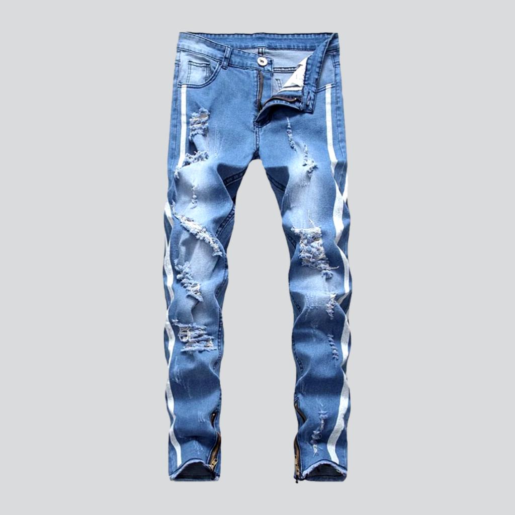 Cuidadosamente elaborados para encarnar el espíritu de rebeldía combinado con una sofisticación refinada, estos jeans ajustados presentan un patrón desgastado urbano y un corte a media cintura. Con una cremallera resistente y un elegante cierre de botones, ofrecen funcionalidad y estilo. Además, su denim de primera calidad promete durabilidad y un toque de estilo sofisticado.