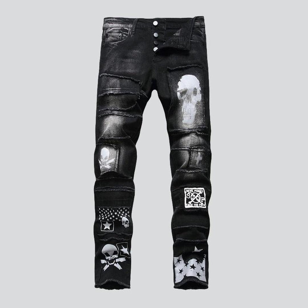 Luce el look más trendy de la temporada con nuestros jeans de calaveras para hombre de la colección Otoño 2023. Con detalles de alta costura como cintura media, cierre de botones y tejido elástico, estos jeans combinan a la perfección estilo y comodidad.