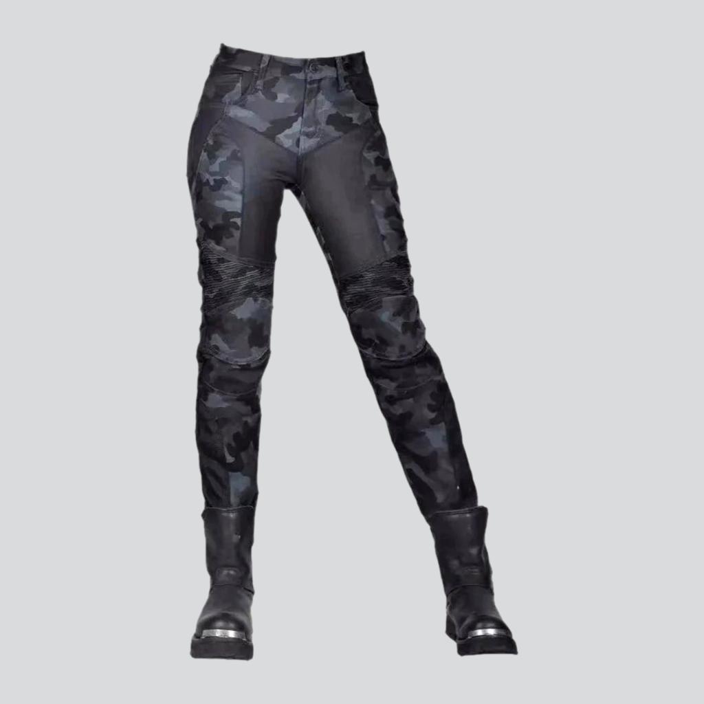 Estos jeans tienen un estampado que favorece e impresiona. Confeccionados con tejido transpirable y protector, ofrecen un ajuste cómodo, perfecto para cualquier ocasión. El corte de cintura media y el elegante cierre de cremallera y botón le dan un toque moderno al estilo motero por excelencia. Además, los detalles de las rodilleras y los llamativos colores los hacen verdaderamente únicos.