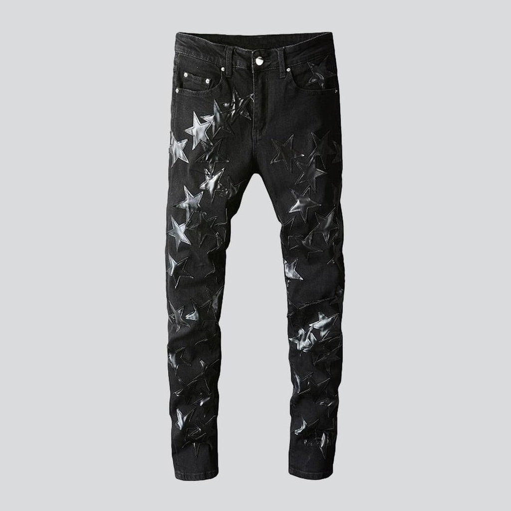 Lleva tu estilo al siguiente nivel con estos jeans negros para hombre inspirados en el Y2K de nuestra Colección Otoño 2023. Confeccionados en denim elástico de primera calidad, estos jeans de cintura media presentan un corte slim de alta costura y un elegante cierre de cremallera y botón. Su intrincado bordado les da un toque de lujo.
