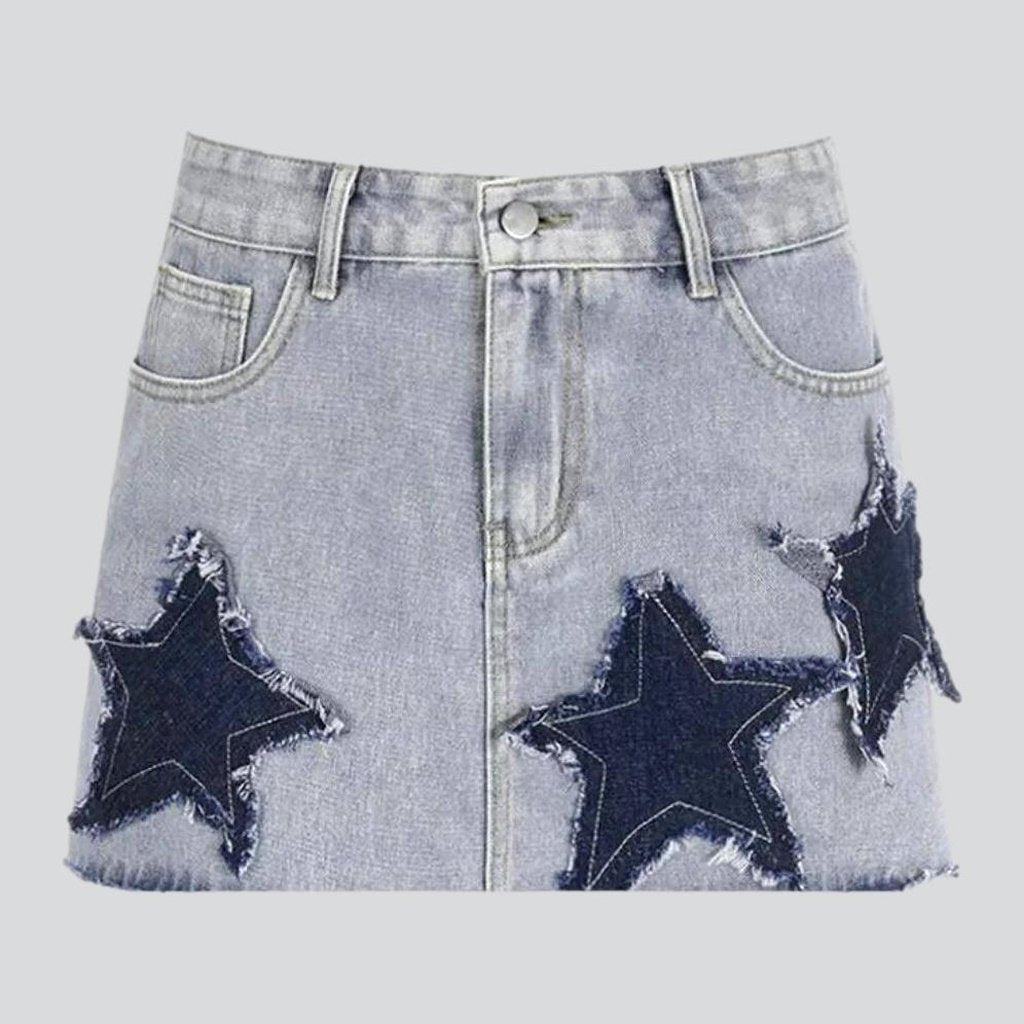 Lleva tu estilo veraniego al siguiente nivel con nuestra falda vaquera con bordado de estrellas inspirada en 2k de la Colección de Verano 2023. Con su divertido corte a media cintura, su lujoso tejido vaquero, su cierre de cremallera y botón, y su audaz bajo sin refinar, seguro que destacarás entre la multitud.