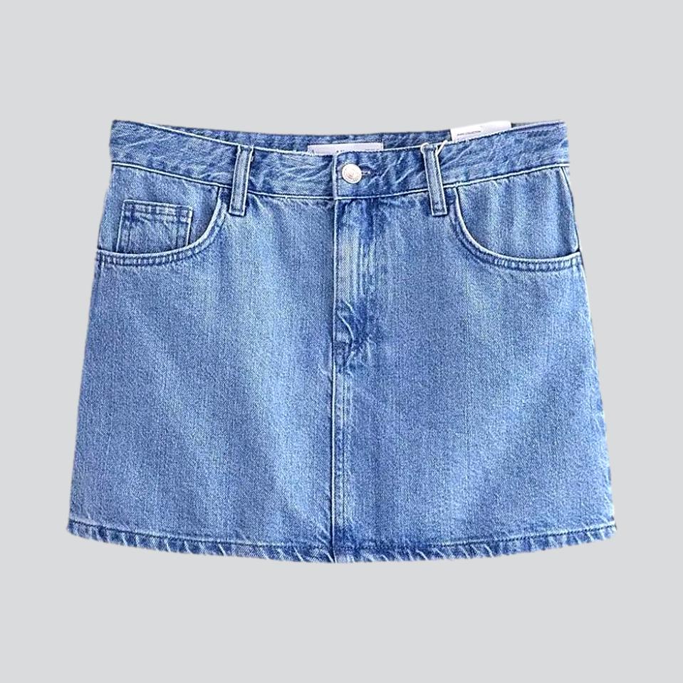 Presentamos nuestra minifalda vaquera de lavado claro inspirada en el premilenio de la colección de verano 2023, ¡un elegante homenaje a la moda legendaria del pasado!