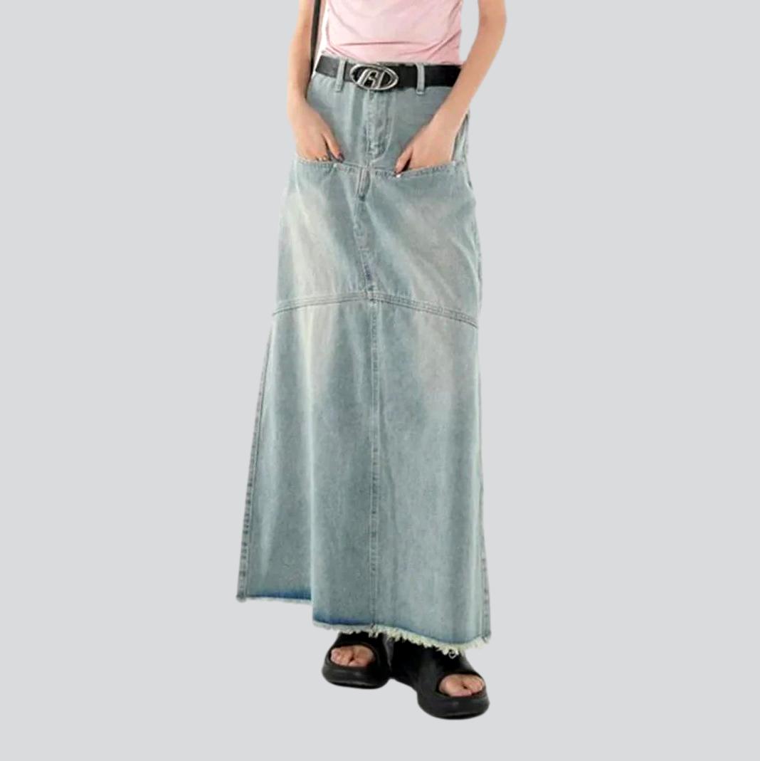 Ya sea para un picnic de verano o para una salida nocturna elegante, esta falda es el complemento perfecto para tu armario. Combínala con una camiseta blanca y zapatillas para un look urbano moderno. O llévala con una blusa y tacones para un estilo vintage atemporal. ¡Prepárate para marcar tendencia esta temporada con la falda vaquera vintage con bolsillos rectos!