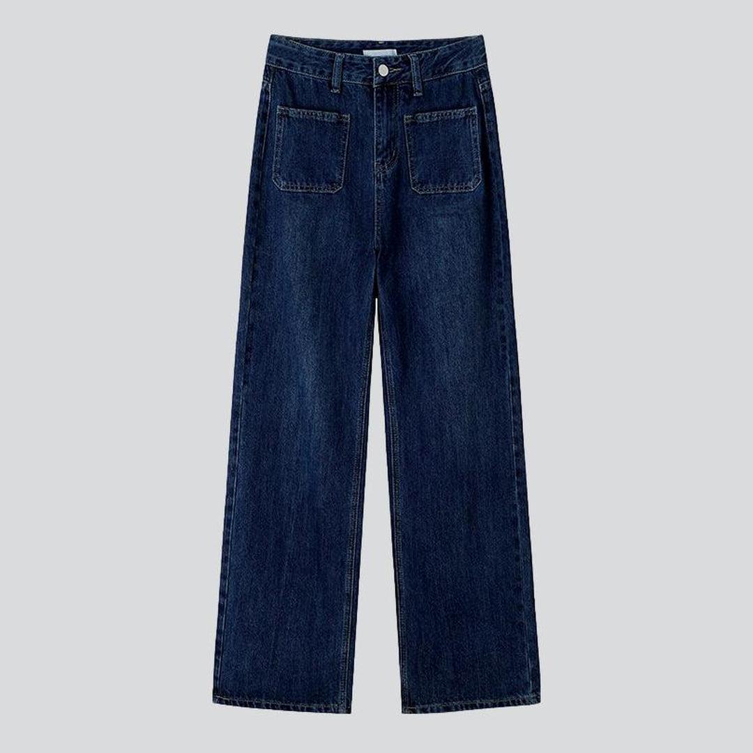 Expresa tu estilo tradicional con nuestros jeans rectos de bolsillo recto para mujer de la Colección Otoño 2023. Estilo noventero. Estos jeans están diseñados para ser la combinación perfecta de moda contemporánea y nostalgia grunge de los 90. Con su patrón desgastado de lavado medio y cintura alta, cuentan con un exclusivo cierre de cremallera y botón. Están confeccionados con denim de primera calidad para un look vanguardista y elegante. Ya sea para un festival de música o para una salida informal, estos jeans serán la joya de la corona de tu atuendo.