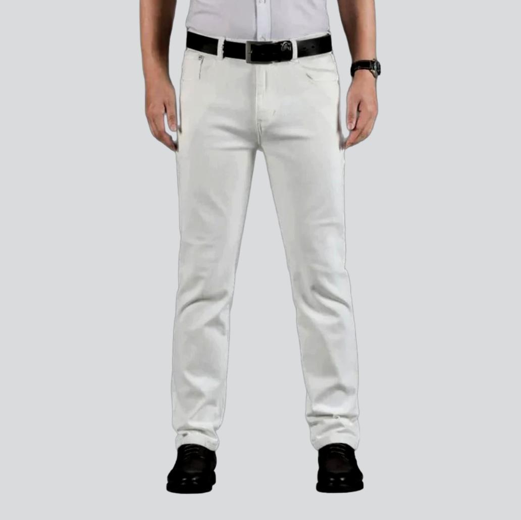 Retrocede en el tiempo con los jeans blancos rectos para hombre de la Colección de Verano 2023, ¡confeccionados con maestría para ser la personificación del estilo de los 90! Con su diseño monocromático de cintura alta y cierre de cremallera y botón, estos jeans harán que tu look destaque entre la multitud.