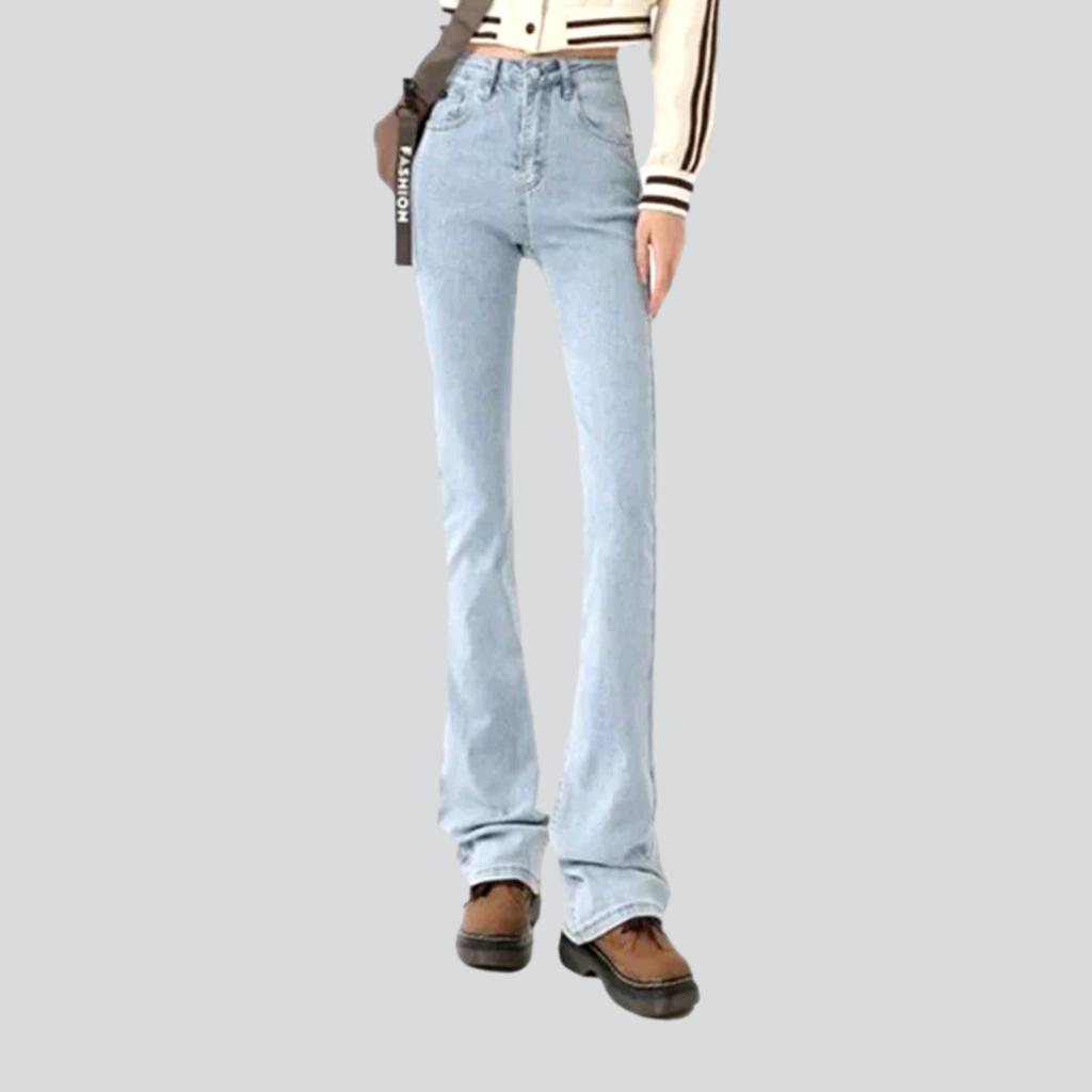 Estos jeans capturan el espíritu de la moda de los 90 con un toque moderno. Confeccionados con un lavado claro, silueta acampanada y cintura alta, este estilo atemporal es ideal para tu armario urbano. El cierre de cremallera y botón garantiza un ajuste ceñido para completar un look atemporal y contemporáneo.