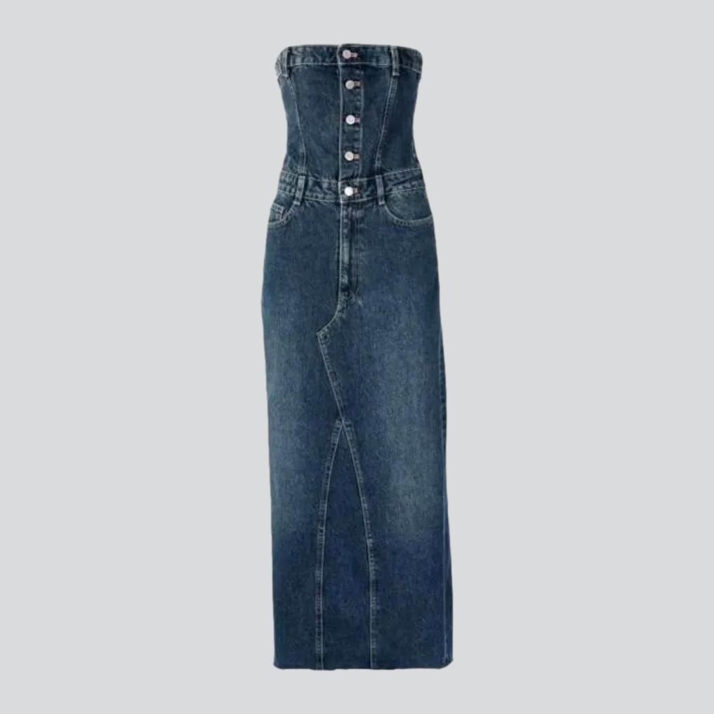 Déjate fascinar por el vestido de mezclilla sin tirantes elástico de la colección de verano 2023, ¡la combinación perfecta de encanto antiguo y moda moderna!