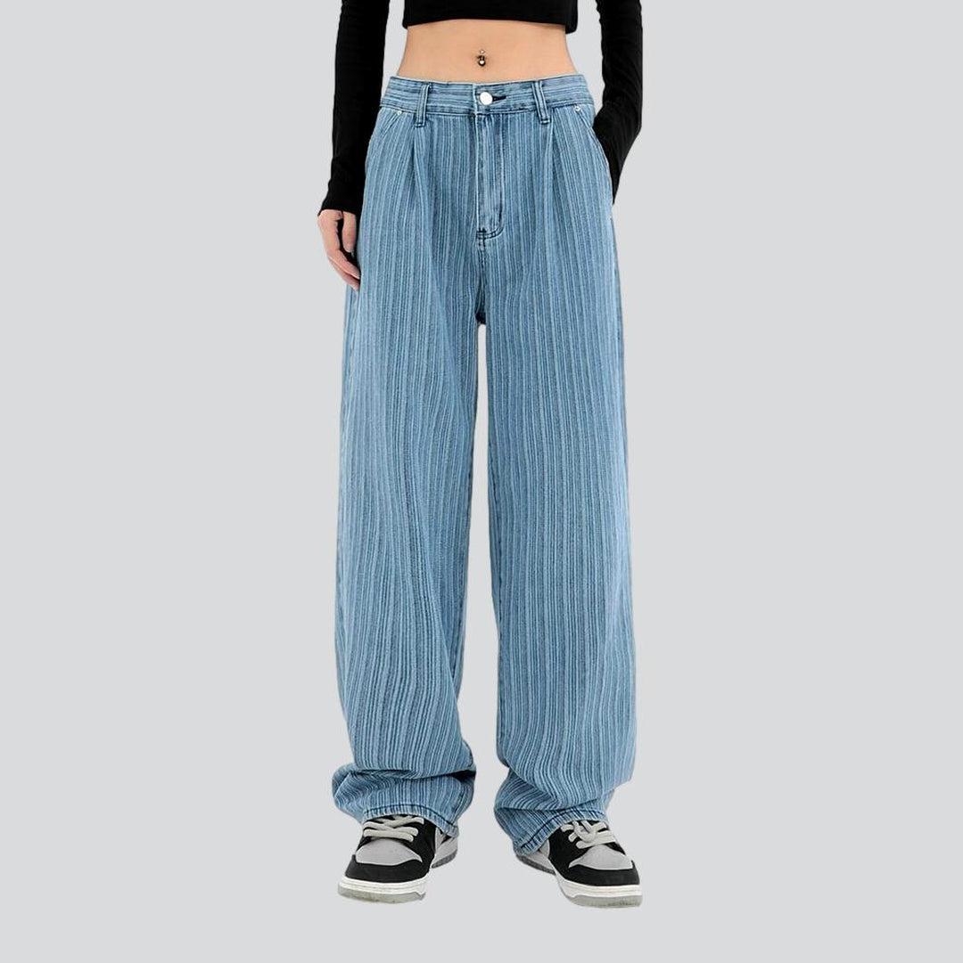 Descubre lo último en estilo urbano con nuestra colección Primavera-Verano 2023 de vaqueros holgados a rayas para mujer . Confeccionados con cintura alta y cierre de cremallera y botón, esta prenda atrevida y atemporal es perfecta para las amantes de la moda que disfrutan explorando los límites del estilo chic.