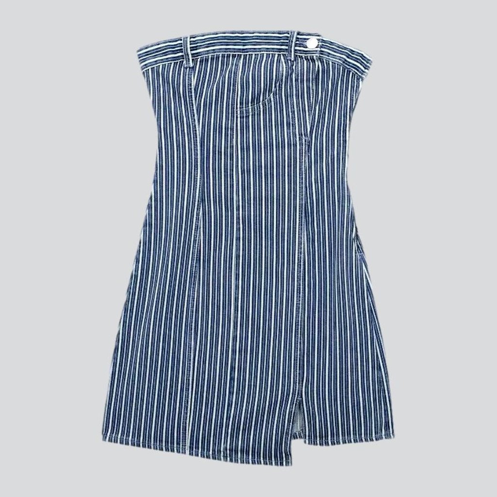 ¡Saque a relucir su audacia interior con nuestro clásico vestido vaquero micro strapless a rayas de la Colección de Verano 2023! Encarna a la perfección el espíritu de rebeldía con su estilo sofisticado. Este vestido es toda una declaración de intenciones. Un himno. Y una onda.